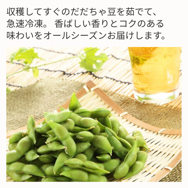 ご購入いただきありがとうございます。 旬の時期に出荷後すぐに茹で上げ、急速冷凍施設で冷凍しておりますので、美味しいだだちゃ豆を通年でお楽しみいただけます。 今後ともご愛顧いただきますようお願い申し上げます。